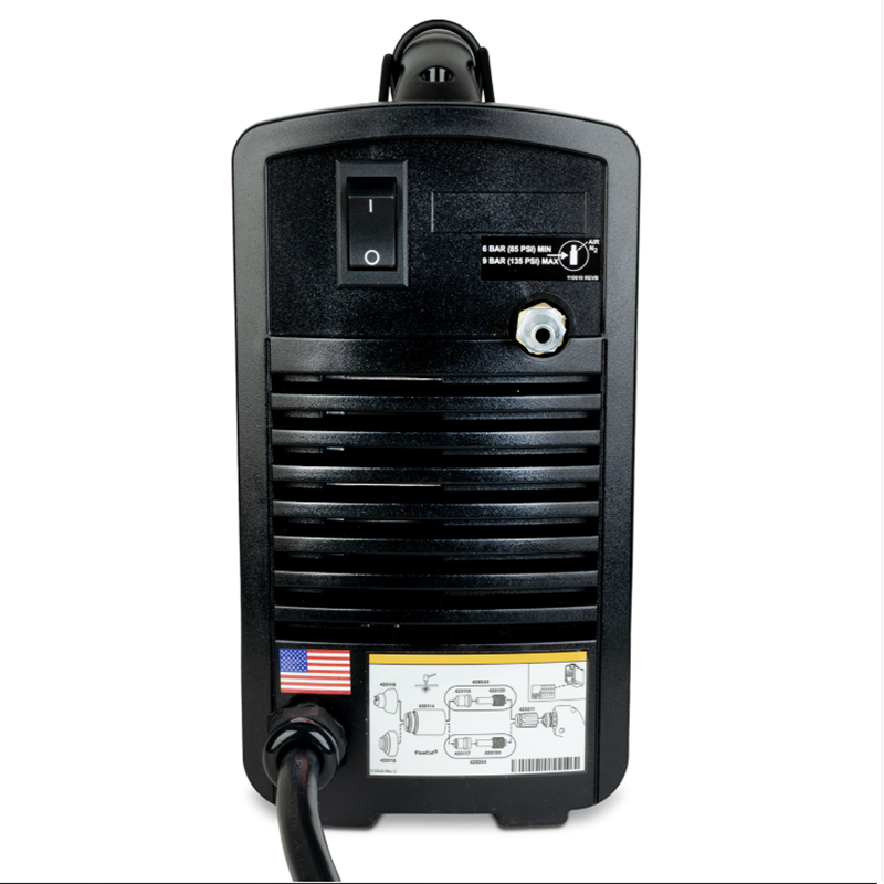The Powermax33 XP is a lightweight portable plasma cutter delivering 33 amps of cutting power with Auto-Voltage technology allowing operation from 120-240 V circuits. The two-in-one design supports both powerful cutting for thicker metals and FineCut consumables for detailed thin-metal cutting.