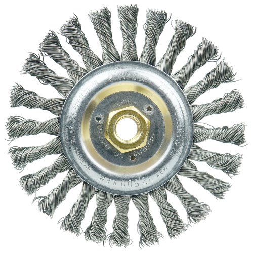 Weiler Roughneck Jr. 6" Filler Pass Weld Cleaning Brush, .023" Steel Wire Fill, 5/8"-11 UNC Nut 08776