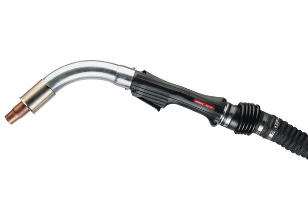The Magnum® 400XA guns are designed for use with gas-shielded solid and flux-cored wires. The two-piece ergonomically designed handle minimizes size, while the non-slip grooves provide maximum comfort and control. A metal and cloth reinforced rubber bellows located directly behind the gun handle provides excellent flexibility and decreases operator fatigue. These guns are factory installed with a Fast-Mate™ European style wire feeder connector. All Magnum® fume extraction guns can be used with virtually any Lincoln or non-Lincoln semiautomatic wire feeder. The 400XA must be used with the appropriate adapter kit.