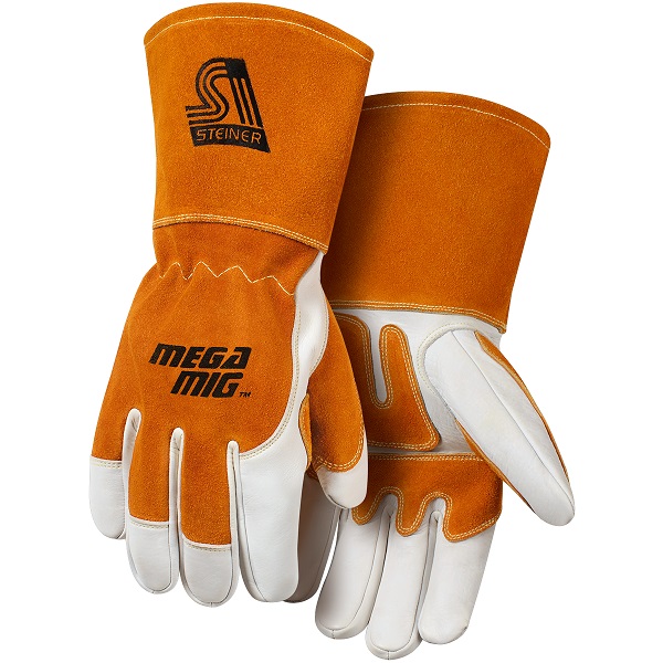 Steiner MegaMIG™ Premium Grain Cowhide With Split Cowhide Back, Reverse Grain Goatskin Reinforcements 0216 MIG Welding Gloves - Cotton Lined, Long Cuff