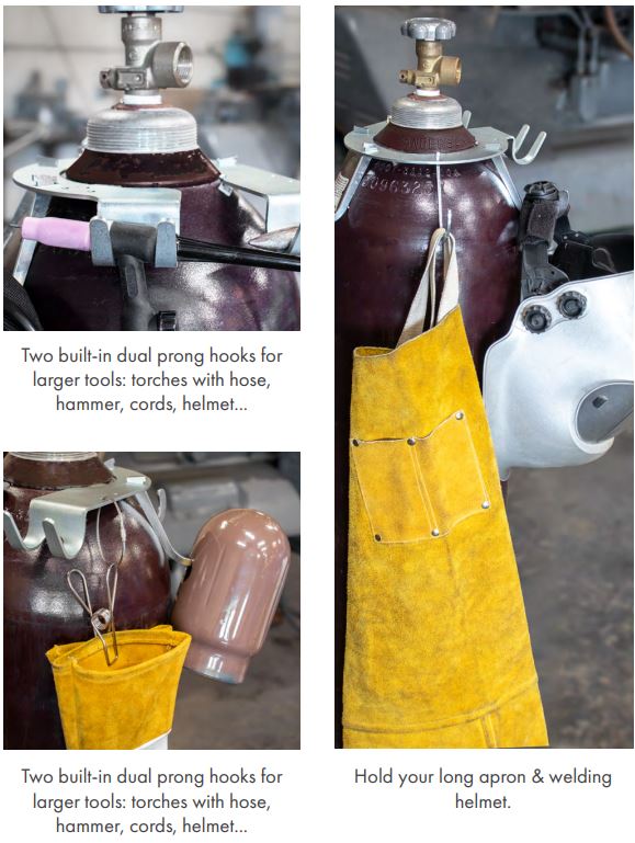 • 2 Large Single Hooks and 2 Double Hooks hold your helmet, hammer, wrenches, and other welding essentials.